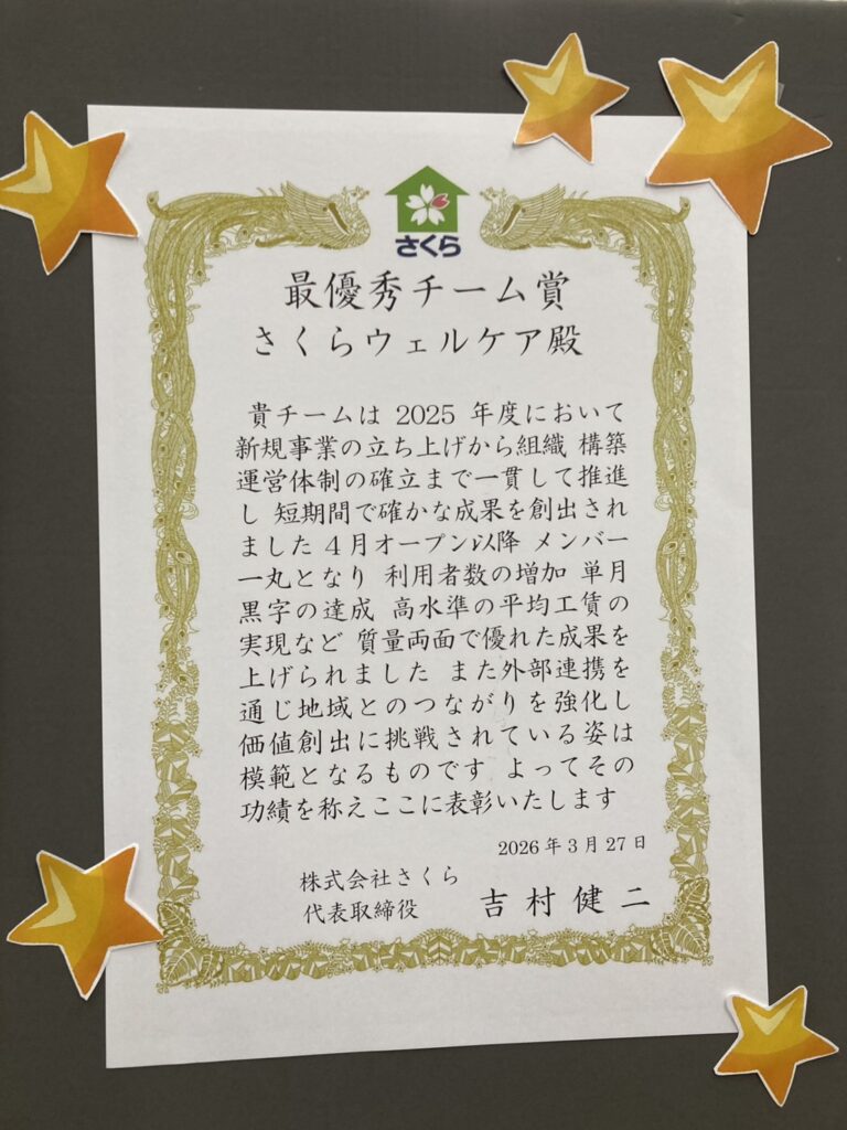 🌸最優秀チーム賞🌸をいただきました。