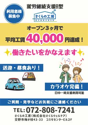 枚方市・交野市の就労支援B型施設、さくらの工房にて利用者様が行う工賃が平均40,000円を達成!